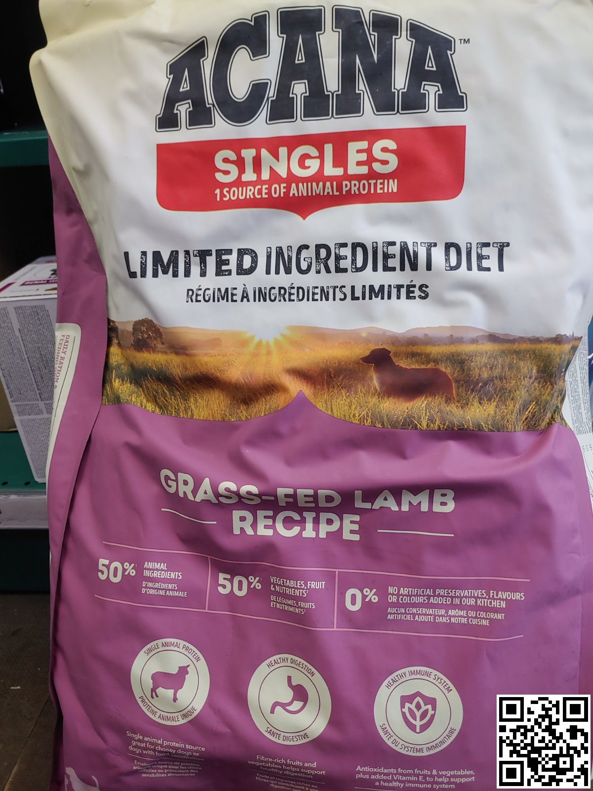 Без концентратів рослинних протеїнів і з єдиним джерелом м’ясних протеїнів, ACANA Grass-Fed Lamb на 50% складається з м’яса ягняти, з яких половина – свіжі і сирі інгредієнти, а інша половина – висушене м'ясо. Всі інгредієнти визнані придатними для споживання в їжу людиною, що гарантує високу якість корму.