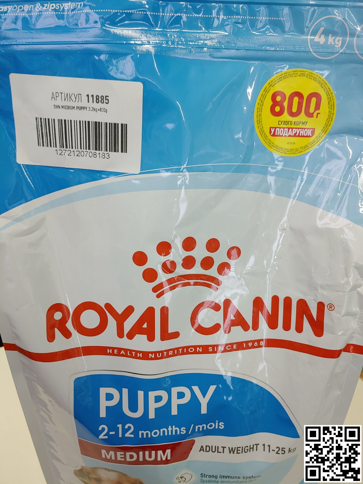Фото строків придатності 3.2+0.8 кг Medium Puppy 4 кг | Royal Canin | Сухий Корм Для Цуценят Середніх Порід, зроблене 2025-11-26 place Спожити до
