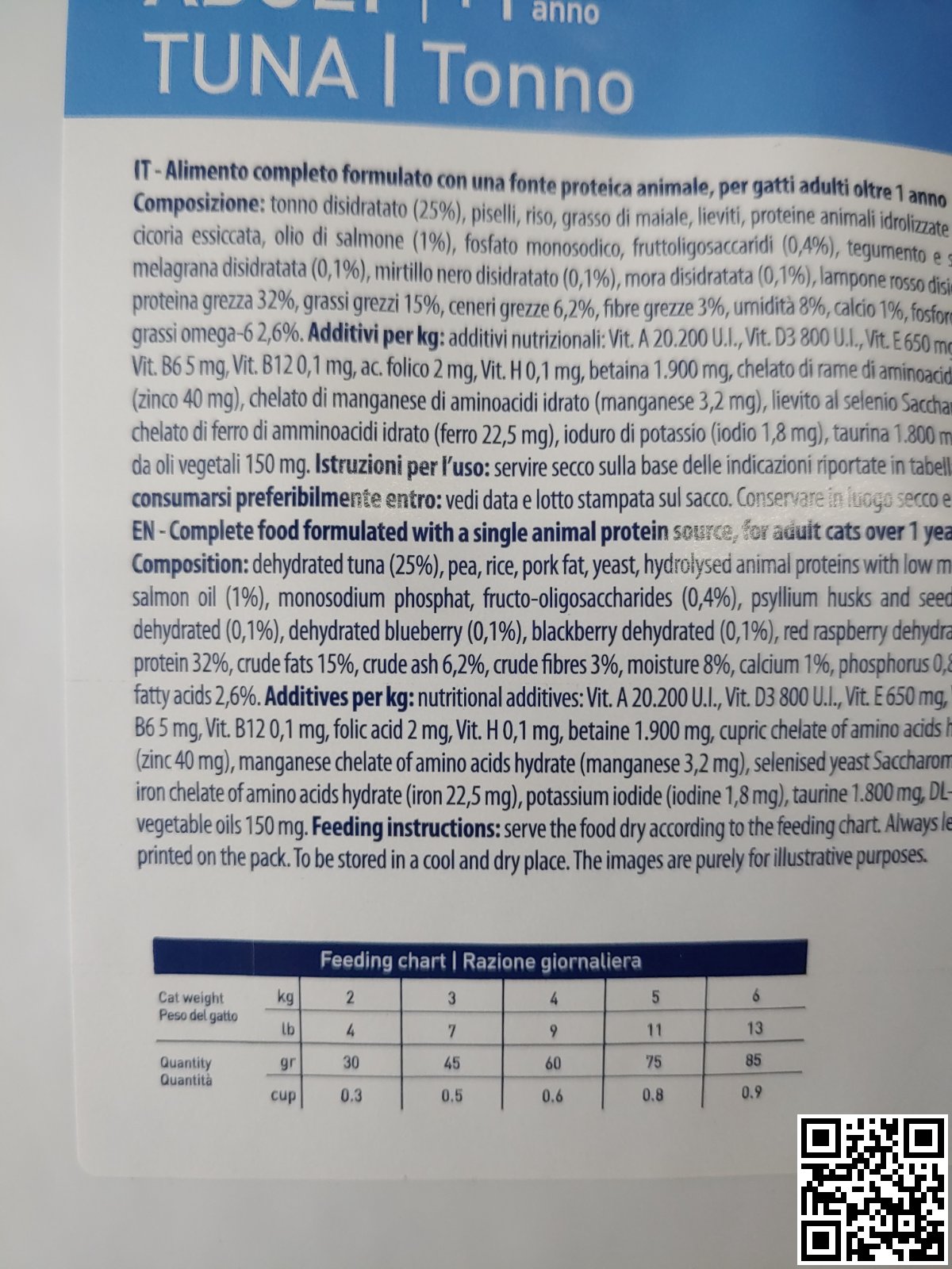 Монопротеїновий раціон на основі білку тваринного походження з тунцем для дорослих котів всіх порід віком від 12 місяців.