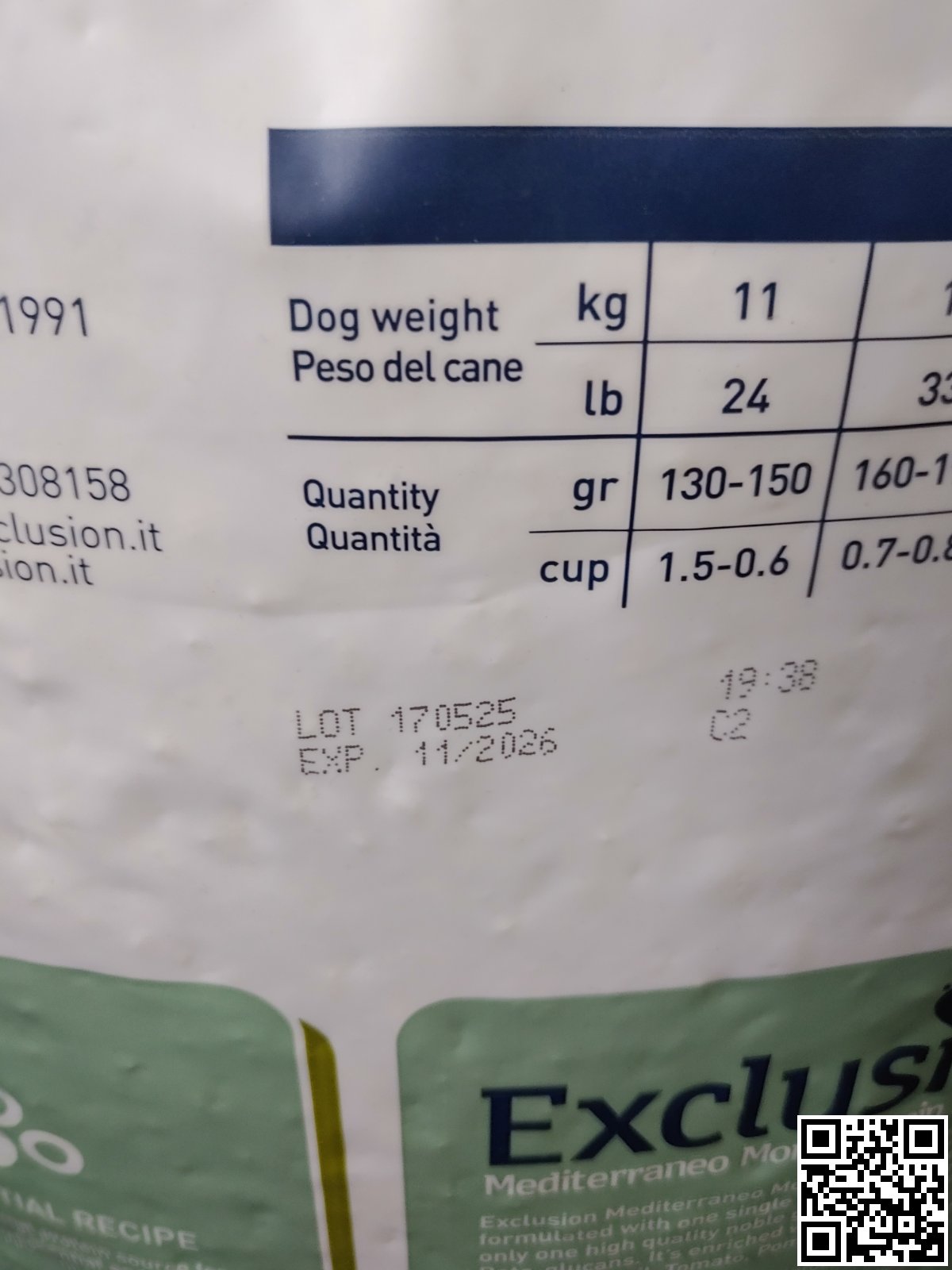 Exclusion Mediterraneo Monoprotein Formula – повнораціонний збалансований корм на основі високоякісного зерна та дегідрованого монопротеїну тваринного походження. Містить тільки натуральні антиоксиданти та β-глюкани. Рецептура корму розроблена в кращих середземноморських традиціях та включає в себе коноплі, оливкову олію, помідори, гранат, броколі та цикорій.