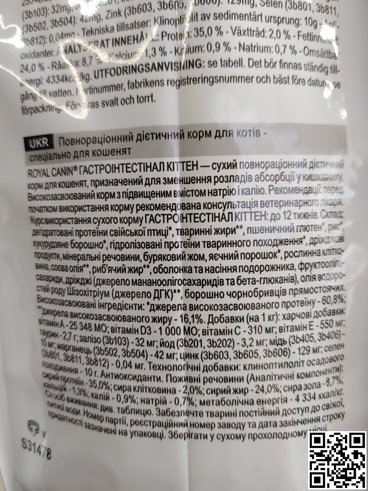 ROYAL CANIN GASTRO INTESTINAL KITTEN це комплексний дієтичний корм спеціально розроблений для кошенят, що зіткнулися з розладами травлення. Цей корм враховує всі харчові потреби вашого малюка, починаючи від періоду відлучення і до повноліття, включаючи період вагітності та лактації у кішок.