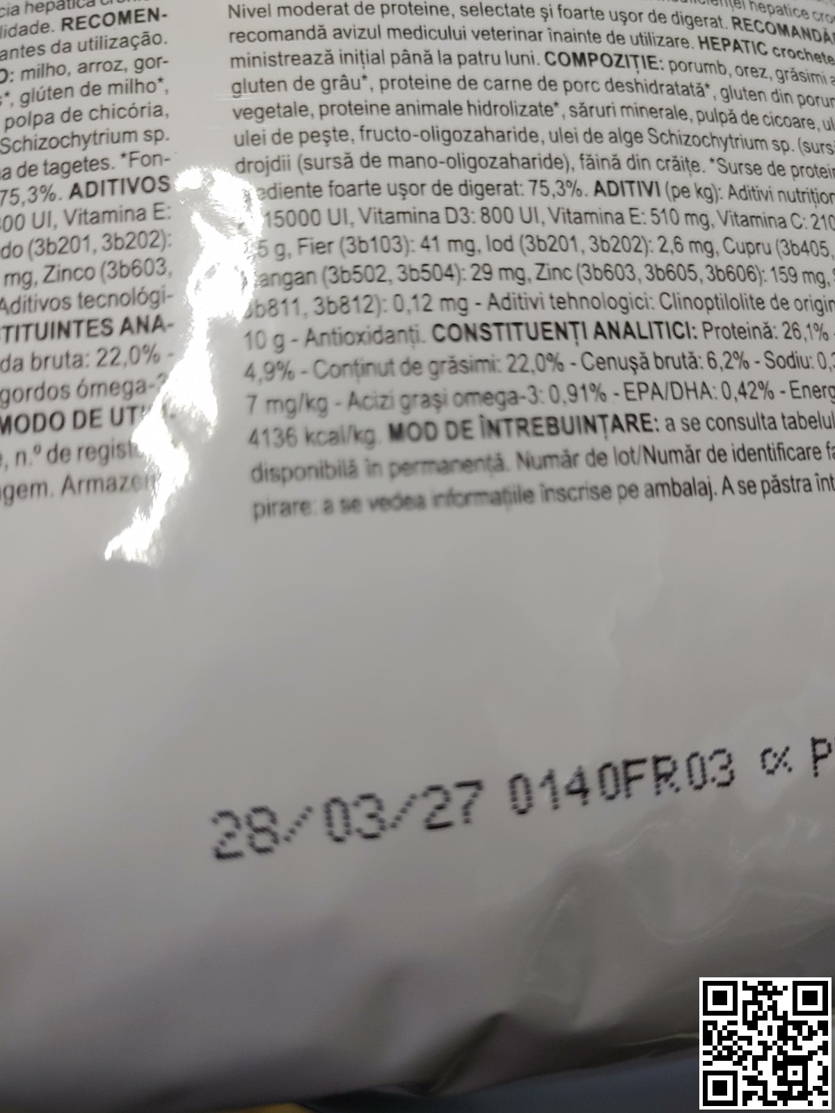 Фото строків придатності Royal Canin Hepatic Cat 2 кг - Ветеринарна дієта для підтримки печінки котів, зроблене 2025-11-28 place Спожити до