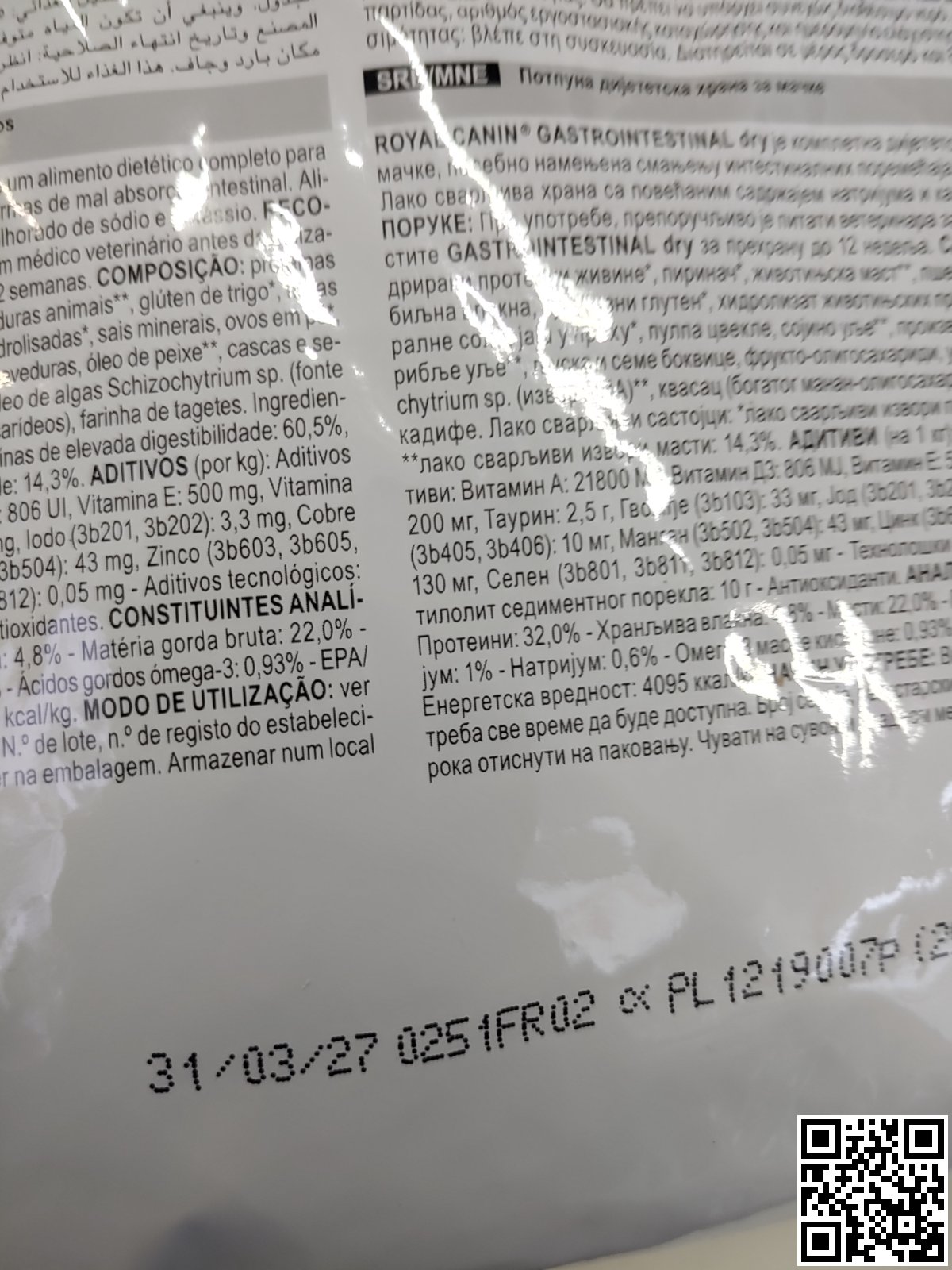 Фото строків придатності Royal Canin GastroIntestinal Cat 2 кг | Сухий Корм для котів Гастроінтестінал, зроблене 2025-09-05 Спожити до