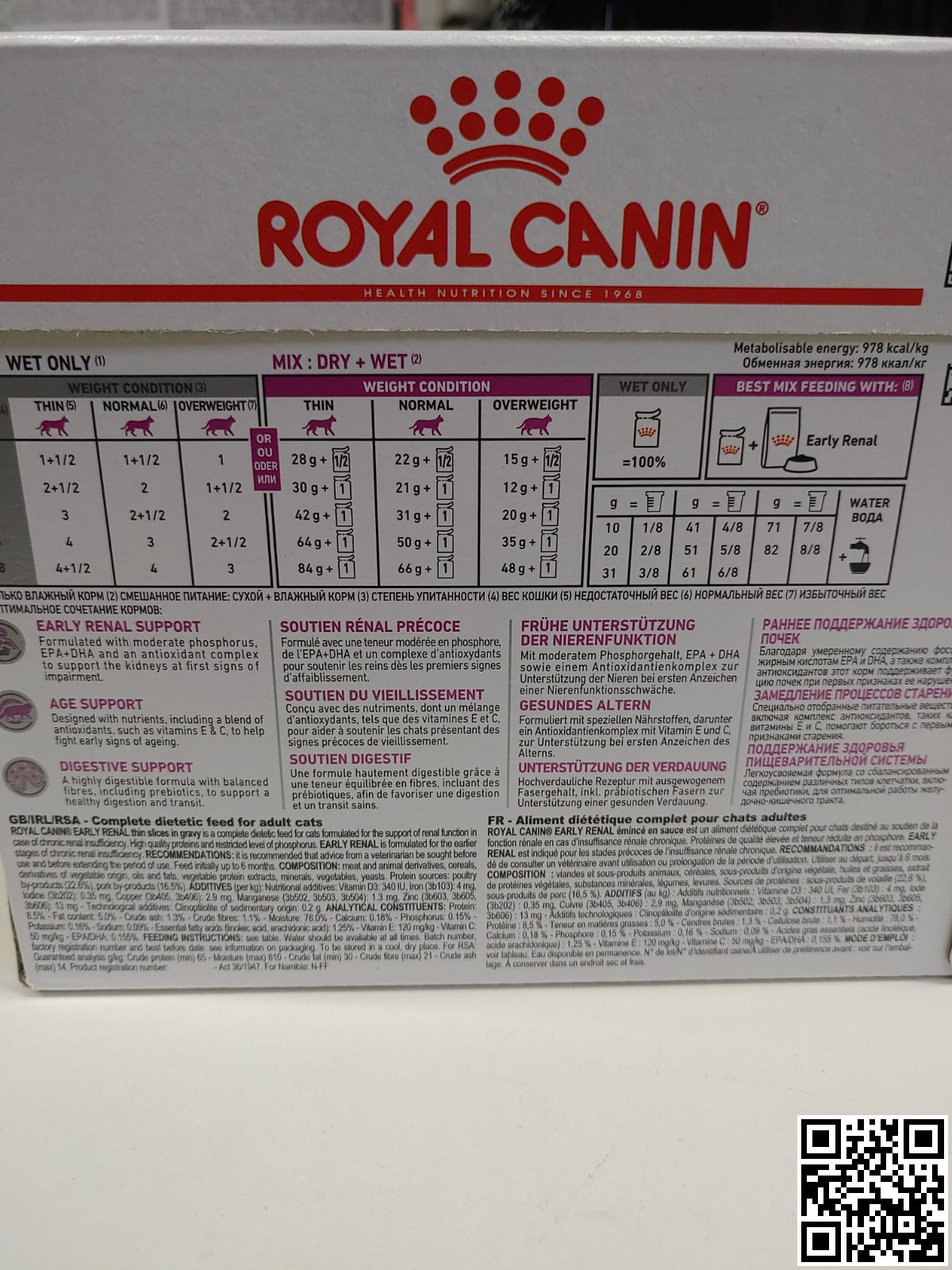 Фото поточного дизайну упаковки royal-canin-early-renal-feline-85-g-vologij-korm-dla-kotiv-ranne-pidtrimanna-nirok place Упаковка