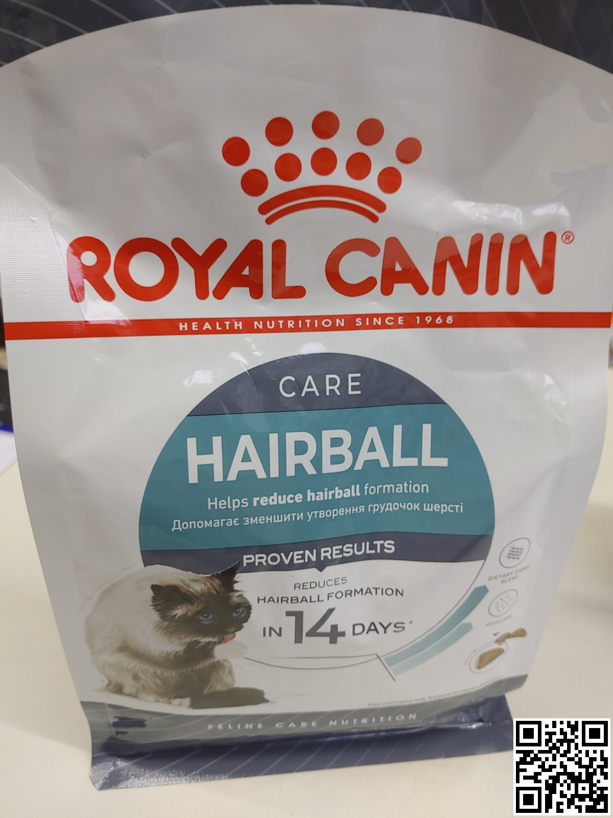 Фото поточного дизайну упаковки royal-canin-hairball-care-povnoracionnij-sukhij-korm-dlya-kotiv-04-kg place Упаковка