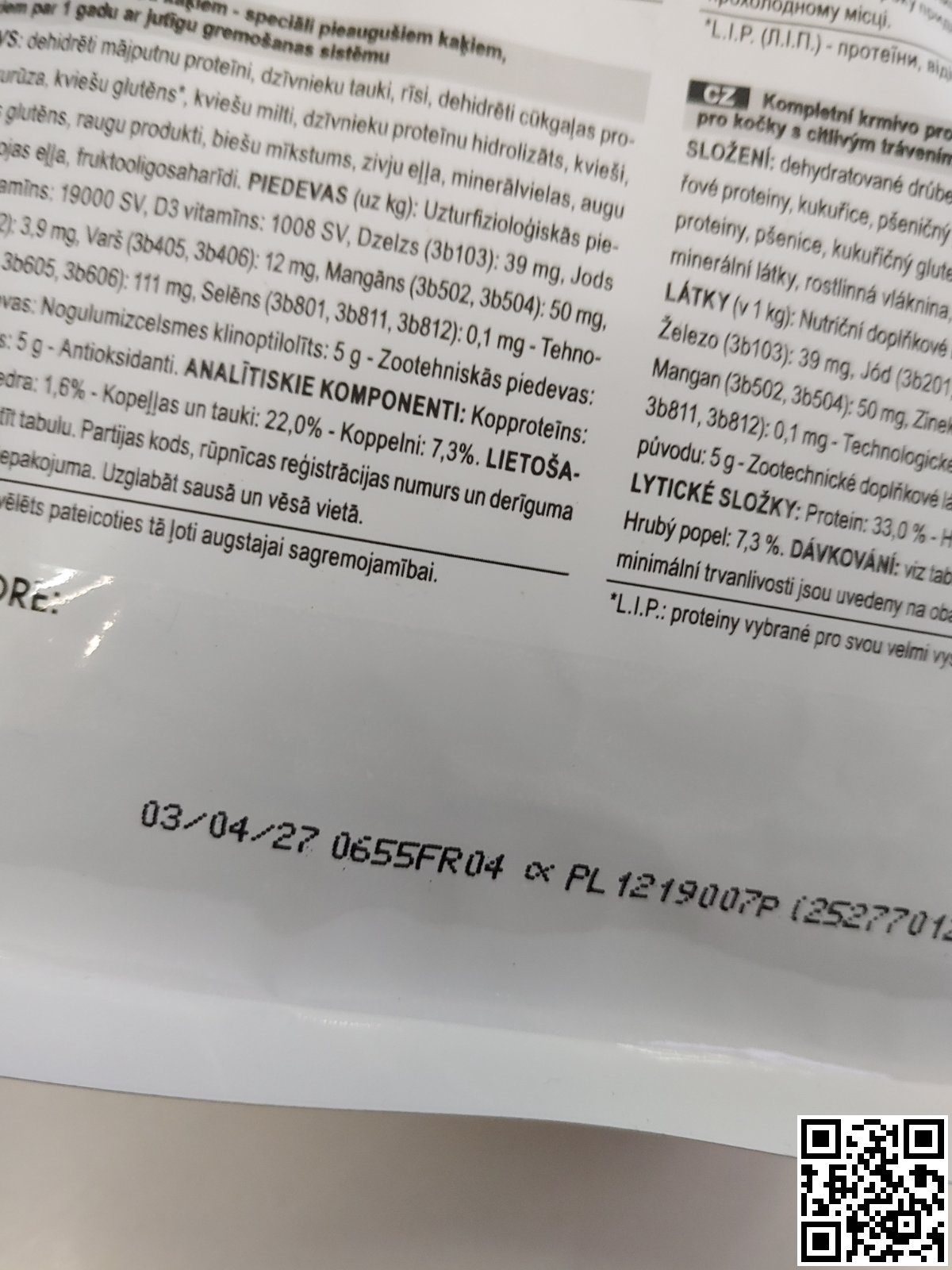Фото строків придатності Sensible 33 (0.4 кг) | Royal Canin | Ідеальне харчування для чутливого травлення, зроблене 2025-11-25 place Спожити до