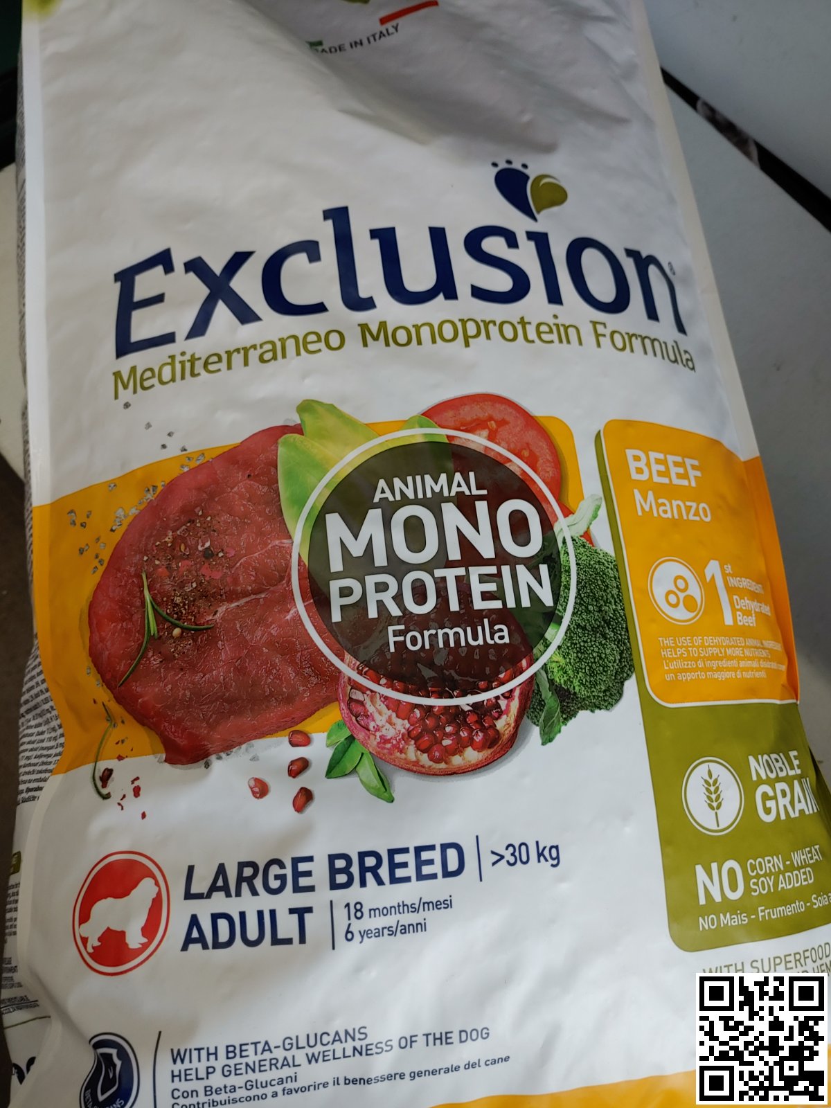 Exclusion Mediterraneo Monoprotein Formula – повнораціонний збалансований корм на основі високоякісного зерна та дегідрованого монопротеїну тваринного походження. Містить тільки натуральні антиоксиданти та β-глюкани. Рецептура корму розроблена в кращих середземноморських традиціях та включає в себе коноплі, оливкову олію, помідори, гранат, броколі та цикорій.