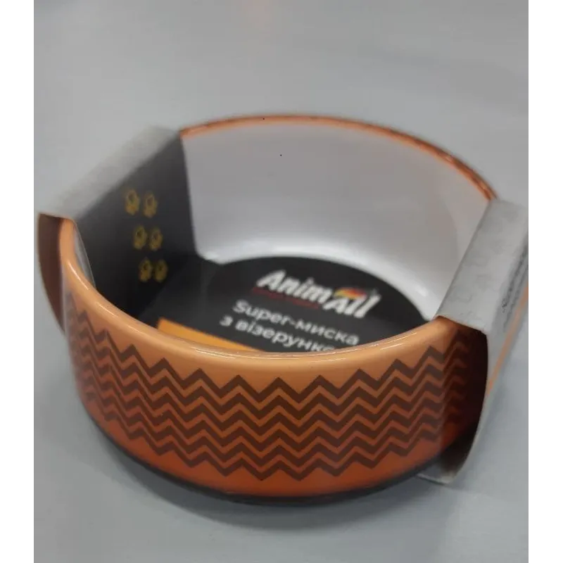 AnimAll Super миска для тварин, пластикова з візерунком, 300 мл, помаранчева