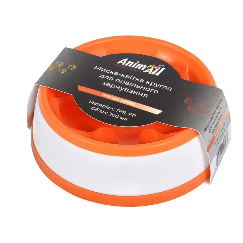 Миска-квітка AnimAll для повільного годування 300мл помаранчево-біла Здорове харчування