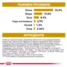 Інгредієнти: Рис, пшеничний глютен*, дегідратовані протеїни м’яса птиці, кукурудзяне борошно, тваринні жири, гідролізат білків тваринного походження, кукурудзяний глютен, мінеральні речовини, рослинна клітковина, риб’ячий жир, соєва олія, фруктоолігосахариди, екстракт чорнобривців прямостоячих (джерело лютеїну).