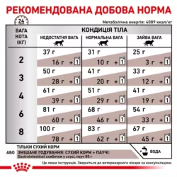 Gastrointestinal — це повнораціонний дієтичний корм для котів. Рекомендується при гострих розладах шлунково-кишкового тракту, в реабілітаційний період та в період одужання.
