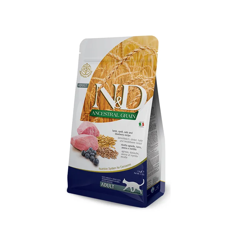 Низькозерновий корм Farmina N&D Ancestral Grain з ягням та чорницею для дорослих котів
