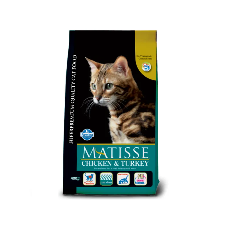 Повнораціонний корм Farmina Matisse для дорослих котів. Збалансований склад з куркою та індичкою для щоденного харчування. Висока смакова привабливість за доступною ціною від zooopt.net!