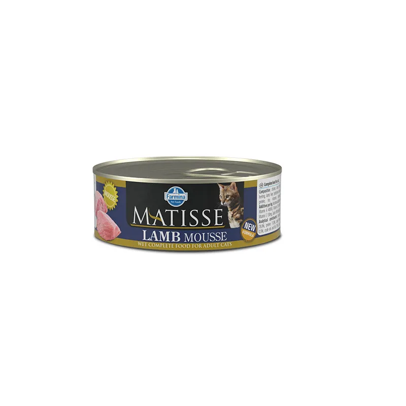 Farmina Matisse Cat Mousse Lamb – це повнораціонний вологий корм у вигляді ніжного та повітряного мусу, створений для щоденного харчування дорослих котів. Цей корм є чудовим доповненням до сухого раціону або може використовуватись як основне харчування. Виготовлений з високоякісних інгредієнтів, мус Matisse має високу смакову привабливість, що задовольнить навіть найвибагливіших котів.