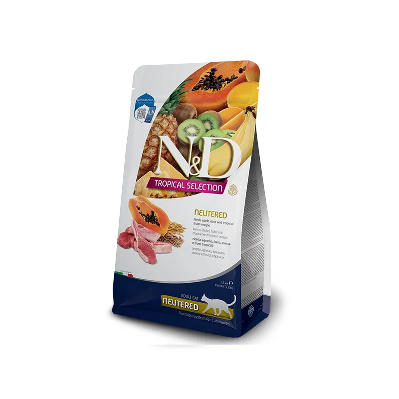 Farmina N&D Tropical Selection Neutered – смачний та корисний раціон з ягням та екзотичними фруктами для підтримки здоров'я вашого стерилізованого улюбленця.