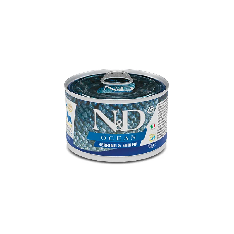 Farmina N&D Ocean Herring & Shrimp – вишуканий повнораціонний паштет з оселедцем, тріскою, тунцем та креветками. Справжній морський делікатес для вашого улюбленця!