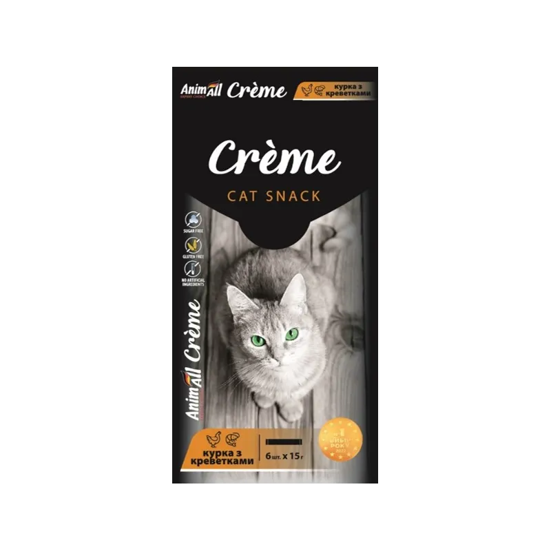 AnimAll Crème ласощі для котів курка та креветки 6х15 г. Ніжний крем-десерт зі знижкою!