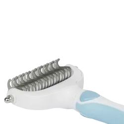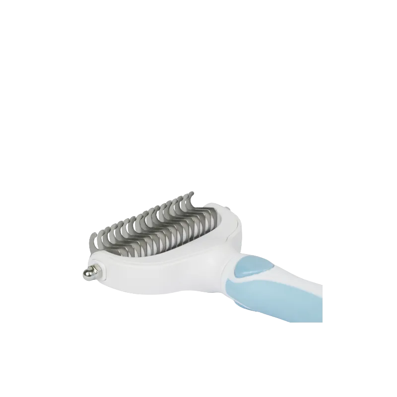 • Двостороння конструкція: Одна сторона з густими зубцями призначена для розбивання щільних ковтунів та видалення підшерстку, а інша — з рідкими зубцями для фінального прочісування та роботи з менш заплутаними ділянками.