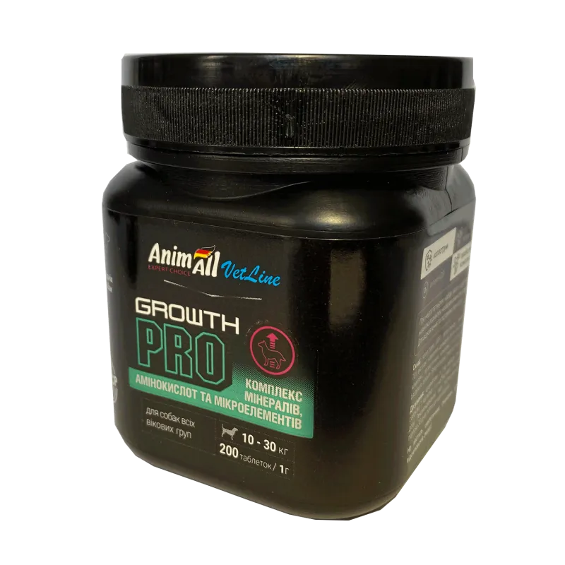 Стимулюйте ріст та імунітет! Вітаміни AnimAll VetLine Growth PRO з колострумом та бета-глюканом для цуценят та дорослих собак середніх порід. Сприяють набору ваги та відновленню імунітету. 200 таблеток.