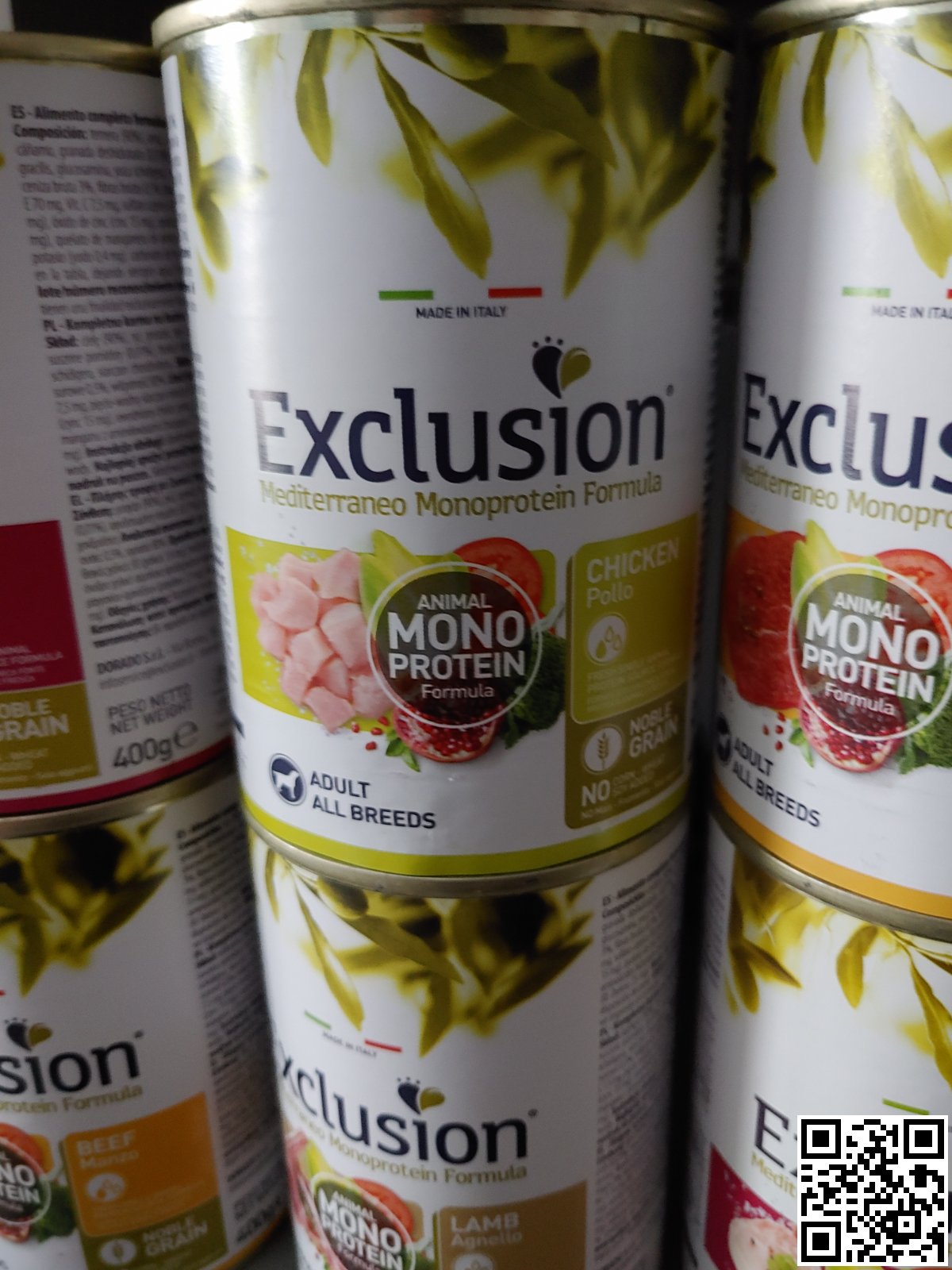 Exclusion Mediterraneo Monoprotein Formula – повнораціонний збалансований корм на основі високоякісного зерна та дегідрованого монопротеїну тваринного походження. Містить тільки натуральні антиоксиданти та β-глюкани. Рецептура корму розроблена в кращих середземноморських традиціях та включає в себе коноплі, оливкову олію, помідори, гранат, броколі та цикорій.